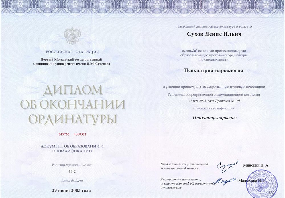 Первый Московский государственный медицинский университет имени И.М. Сеченова (Психиатрия-наркология)